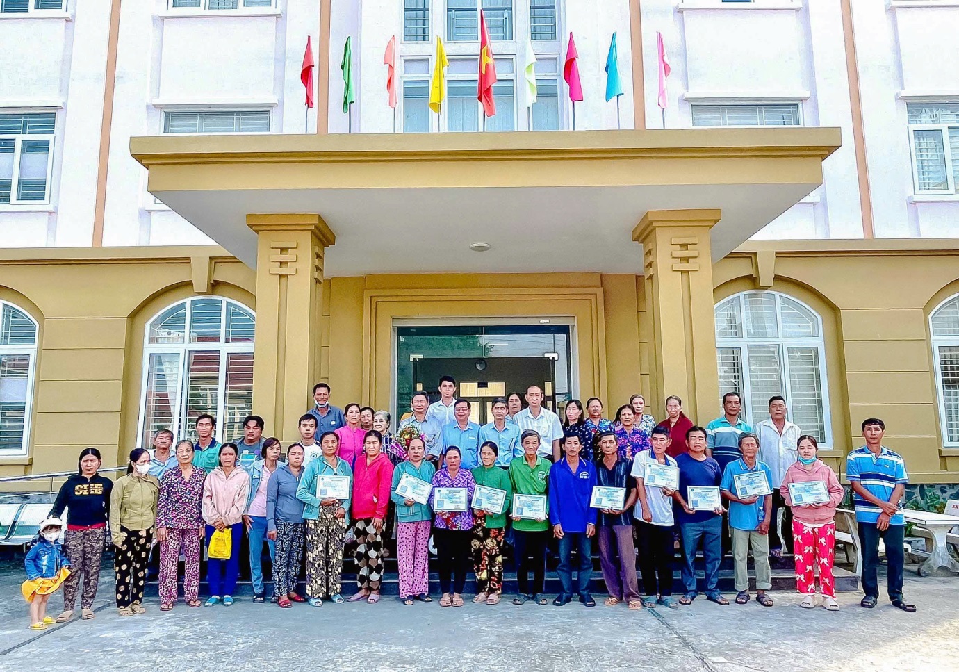Lãnh đạo chụp ảnh lưu niệm cùng bà con nhận thẻ BHYT