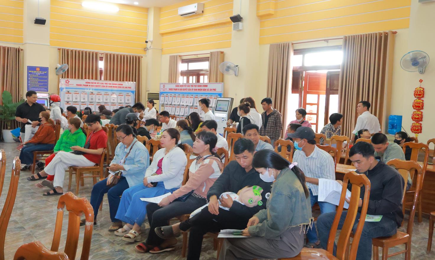 Quang cảnh người dân chờ làm thủ tục hành chính tại Trung tâm Phục vụ hành chính công xã An Phú