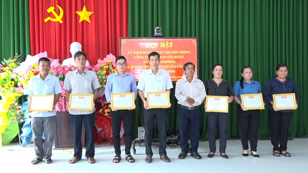 Ông Trần Văn Thiên, Phó Bí thư Đảng ủy, Trưởng Khối Dân vận xã Nhơn Hội trao giấy khen cho các tập thể và cá nhân