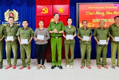 Trung tá Phạm Hoài Thanh, Chính trị viên Ban Chỉ huy Quân sự huyện An Phú trao giấy khen cho tập thể và cá nhân đạt thành tích trong công tác QSQP địa phương