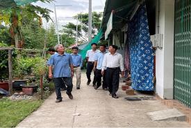 Đoàn công tác của Huyện ủy khảo sát tình hình đời sống những hộ dân các khu nhà đại đoàn kết liền kề