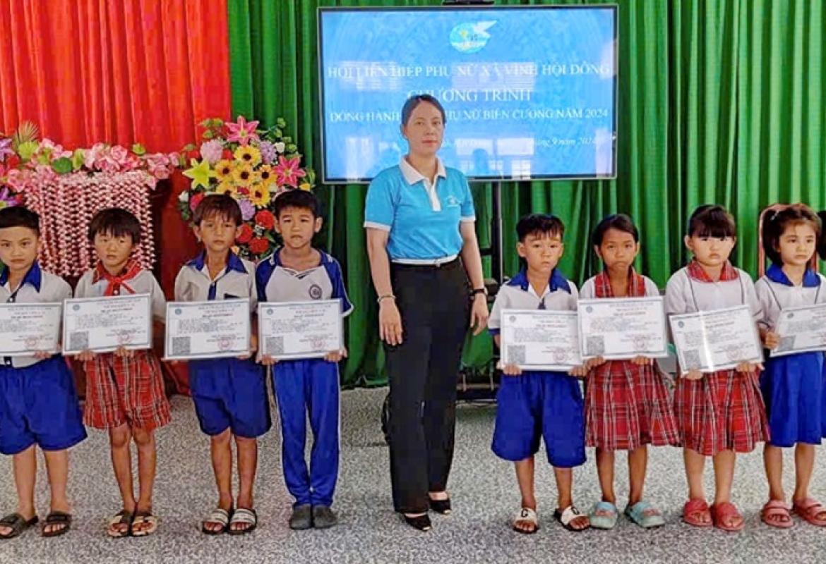 Hội LHPN xã Vĩnh Hội Đông trao tặng thẻ bảo hiểm y tế cho học sinh nghèo