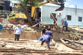 Long Bình huy động lực lượng gia cố khu vực sạt lở đất bờ sông tại khóm Tân Bình