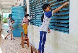 Tổng vệ sinh trường học, chuẩn bị cho năm học mới tại Trường Tiểu học “A” Vĩnh Hội Đông
