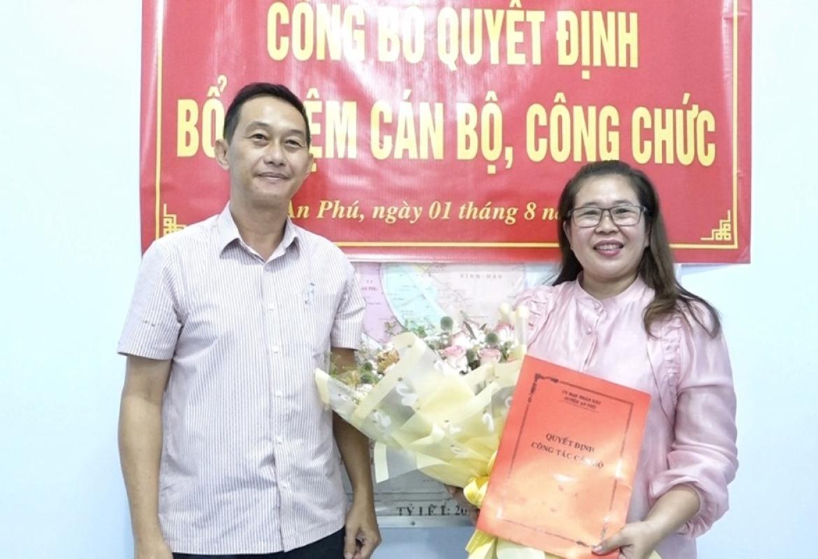 Bà Nguyễn Trung Hạnh được bổ nhiệm giữ chức vụ Trưởng phòng Lao động – Thương binh và Xã hội huyện An Phú
