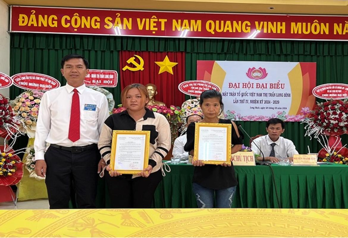 Thị trấn Long Bình trao 2 căn nhà Đại đoàn kết cho hộ nghèo