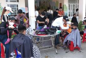 Cắt tóc miễn phí và tặng gạo cho học sinh khó khăn trường Tiểu học Khánh Bình