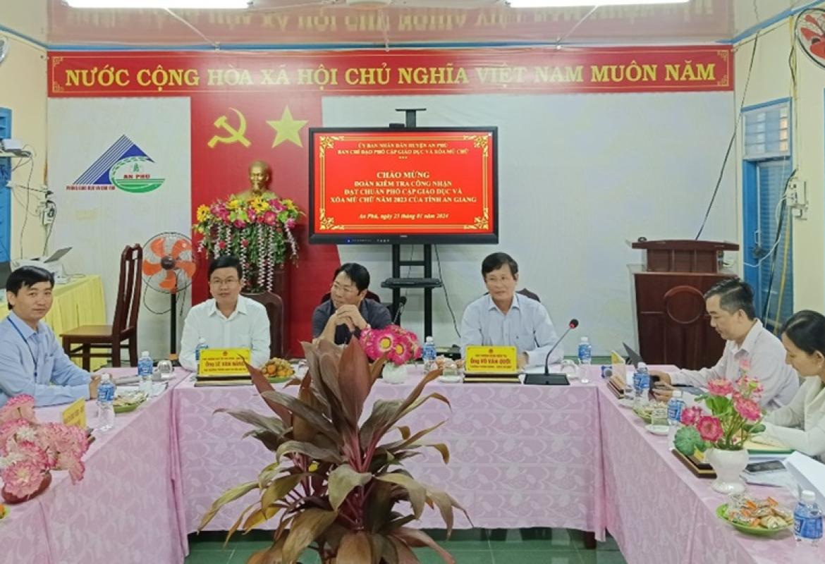 Sở Giáo dục và Đào tạo An Giang kiểm tra công nhận đạt chuẩn phổ cập giáo dục và xóa mù chữ năm 2023 tại huyện An Phú