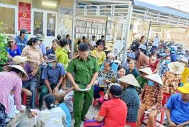 Công an xã Vĩnh Hội Đông tuyên truyền người dân không mua bán, sử dụng trái phép pháo nổ