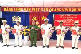 Công an huyện An Phú công bố và trao Quyết định công tác cán bộ của Giám đốc Công an tỉnh và Trưởng Công an huyện