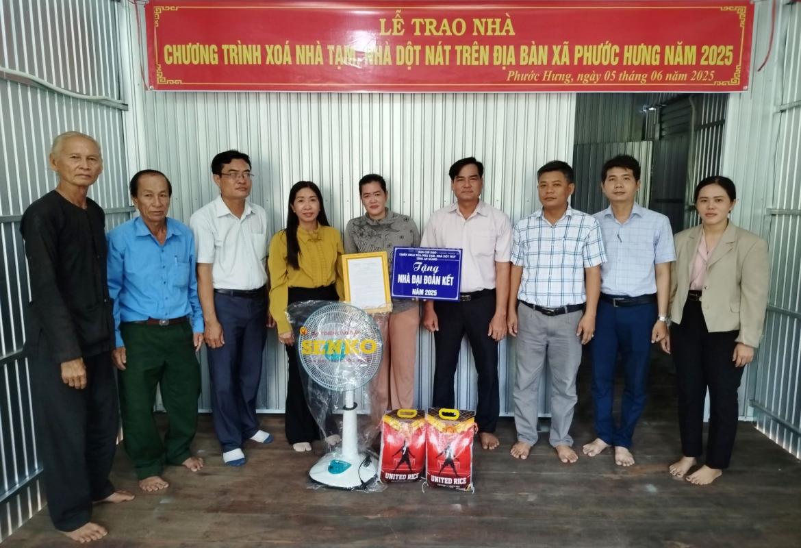 Sáng 5/6, Đảng ủy, HĐND, UBND, UBMTTQVN xã Phước Hưng bàn giao 04 căn nhà Đại đoàn kết cho hộ nghèo, cận nghè