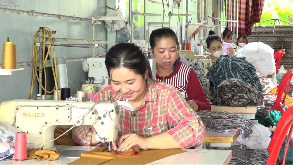 Là một trong những nhân công của cở sở may khi mới thành lập, chị Nguyễn Thị Ngọc Giàu cho biết: Tôi làm được 2 năm, công việc cũng nhẹ nhàng, không vất vả, mỗi tháng thu nhập 4,5 triệu đồng, có tháng cũng được 5 triệu, đủ để trang trải cuộc sống.