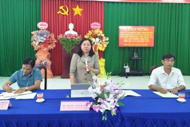 Bà Nguyễn Thị Phướng, Phó Chủ tịch UBND huyện An Phú kiểm tra tiến trình xây dựng nông thôn mới xã Quốc Thái