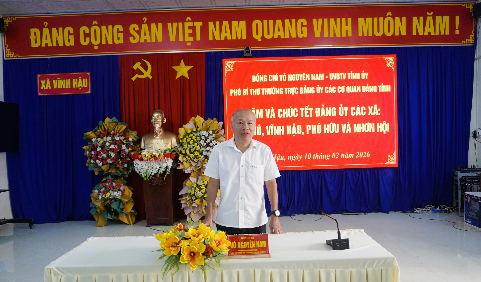 Sáng 10/2/2026, ông Võ Nguyên Nam, Ủy viên Ban Thường vụ Tỉnh ủy, Phó Bí thư Thường trực Đảng ủy các cơ quan Đảng tỉnh An Giang, đã đến thăm, chúc tết Đảng ủy các xã: An Phú, Vĩnh Hậu, Phú Hữu và Nhơn Hội.