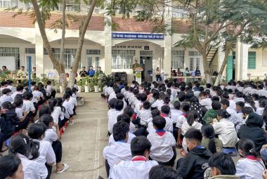Công an xã Vĩnh Hội Đông tuyên truyền an toàn giao thông, phòng cháy chữa cháy, phòng chống tội phạm và bạo lực học đường cho học sinh
