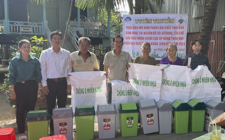 Trước đó, tại ấp Quốc Hưng, xã Quốc Thái, Phòng Tài nguyên và Môi trường huyện đã tuyên truyền thực hiện mô hình phân loại chất thải rắn và tái chế, tái sử dụng rác thải nhựa cho 201 hộ dân và trao 402 thùng rác môi trường.
