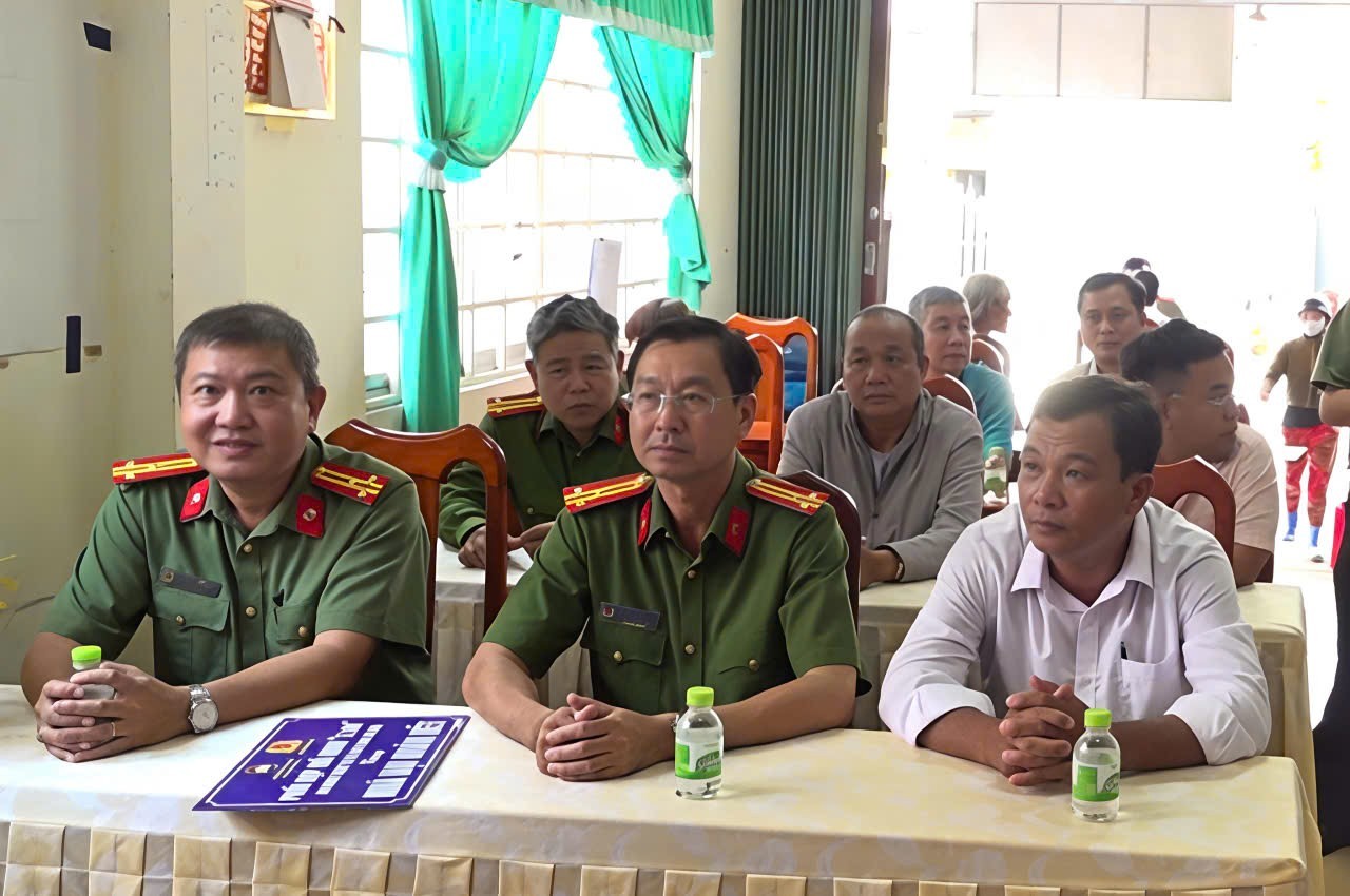 Thượng tá Huỳnh Quốc Tiến, Phó trưởng Phòng An ninh nội địa, Công an tỉnh An Giang; ông Võ Văn Lẫy, Chủ tịch Ủy ban MTTQ Việt Nam xã; Thượng tá Huỳnh Văn Phú, Trưởng Công an xã dự lễ