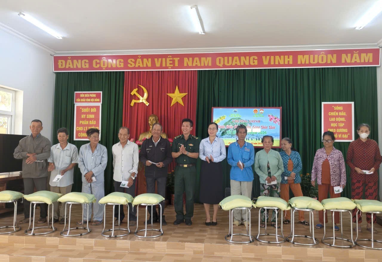 Sáng 5/2, Đồn Biên phòng cửa khẩu Vĩnh Hội Đông phối hợp với UBND xã An Phú tổ chức Chương trình “Xuân Biên phòng - Ấm lòng dân bản” năm 2026; Tỉnh ủy viên, Bí thư Đảng ủy, Chủ tịch HĐND xã An Phú Quách Tố Giang; ông Lê Thanh Phương, Phó Bí thư Thường trực Đảng ủy, Giám đốc Trung tâm Chính trị xã An Phú; Thượng tá Mai Đức Phương, Đồn trưởng Đồn Biên phòng cửa khẩu Vĩnh Hội Đông; Thiếu tá Võ Văn Toán, Chính trị viên Đồn Biên phòng cửa khẩu Vĩnh Hội Đông; cùng đại diện các ban ngành, đoàn thể địa phương; cán bộ, chiến sĩ biên phòng và các hộ dân tiêu biểu trên địa bàn xã tham dự.