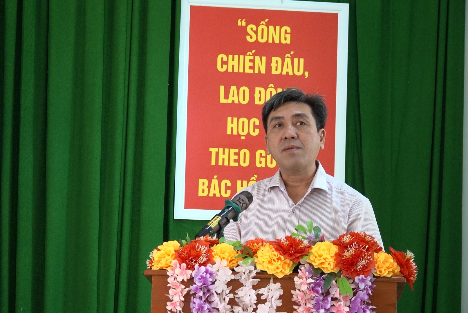 Ông Nguyễn Xuân Tiến, Phó Bí thư Đảng ủy, Chủ tịch UBND xã An Phú phát biểu tại chương trình “Xuân Biên phòng - Ấm lòng dân bản”