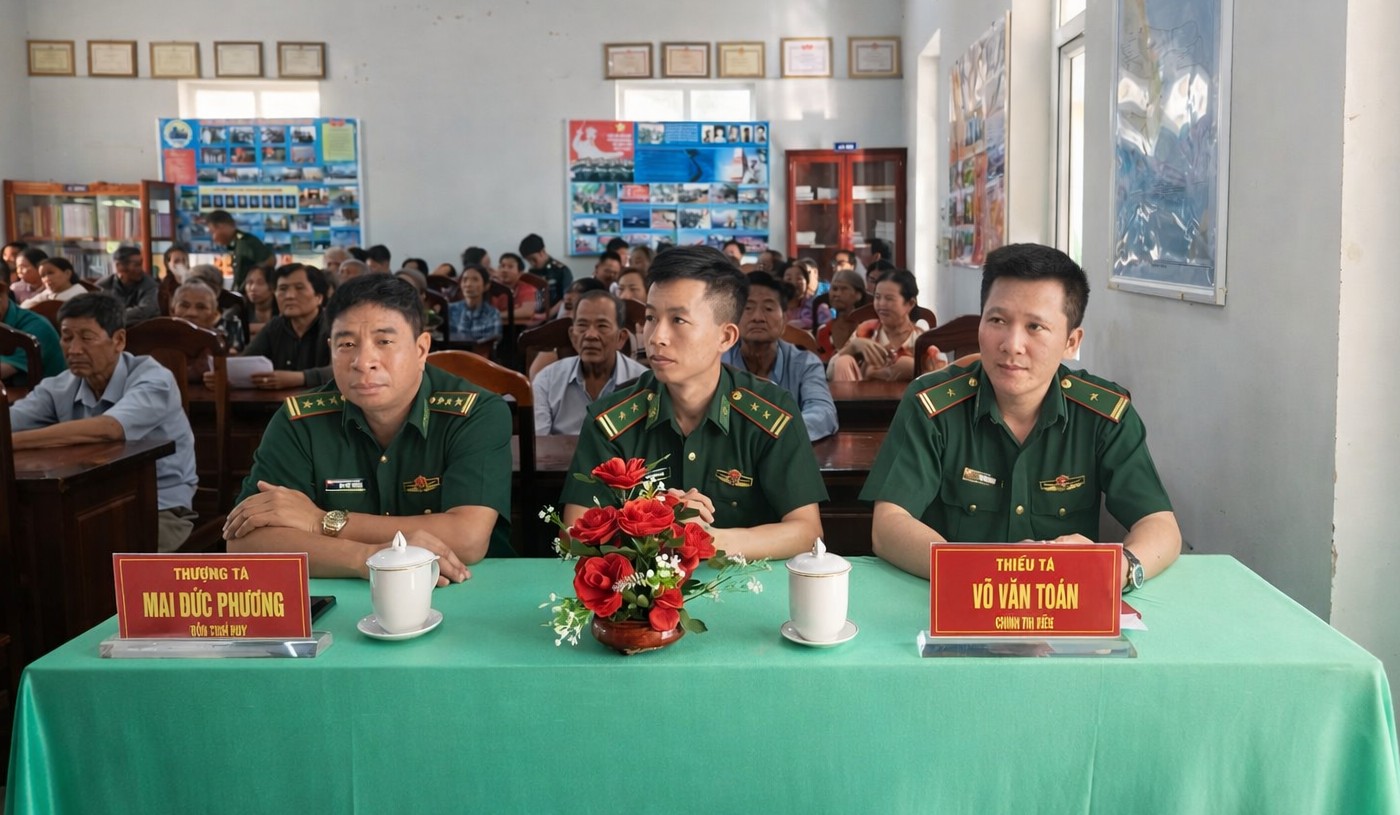 Thượng tá Mai Đức Phương, Đồn trưởng Đồn Biên phòng cửa khẩu Vĩnh Hội Đông; Thiếu tá Võ Văn Toán, Chính trị viên Đồn Biên phòng cửa khẩu Vĩnh Hội Đông tại chương trình