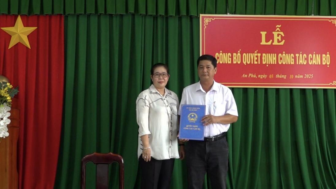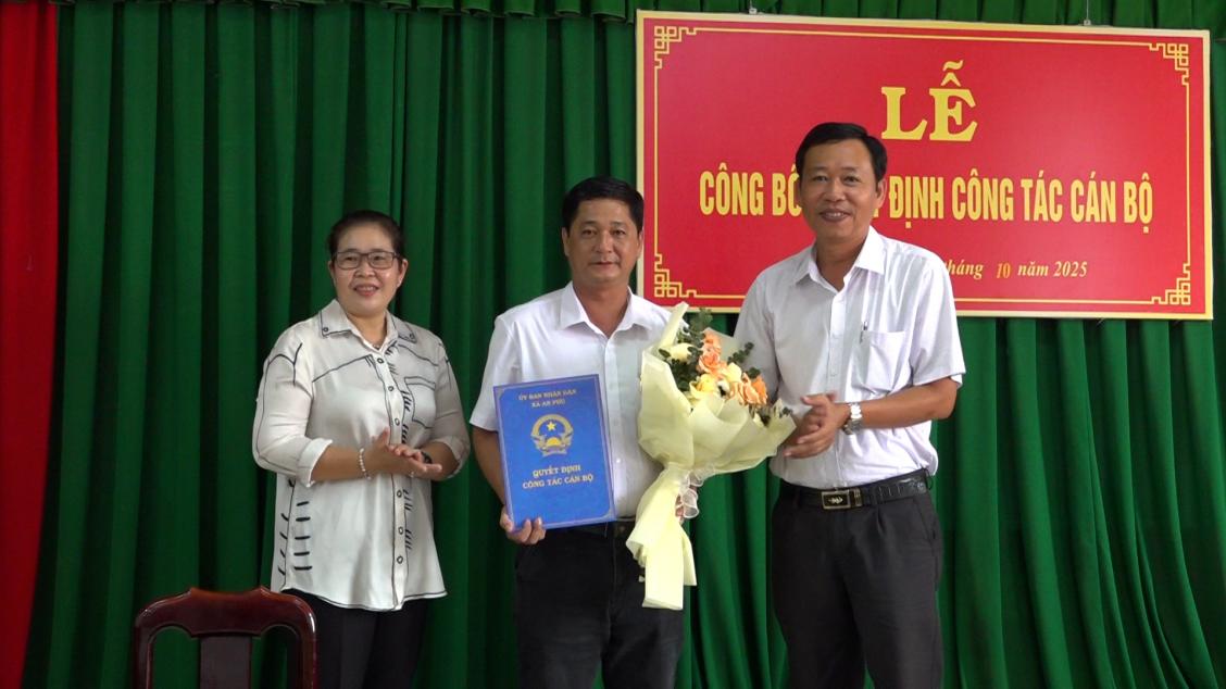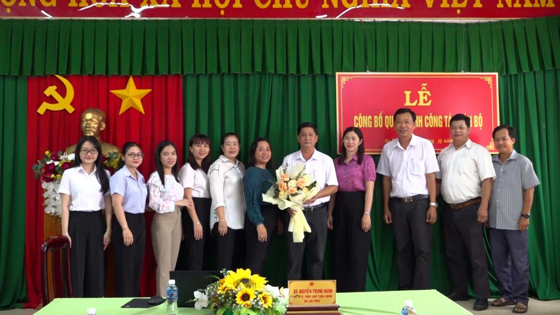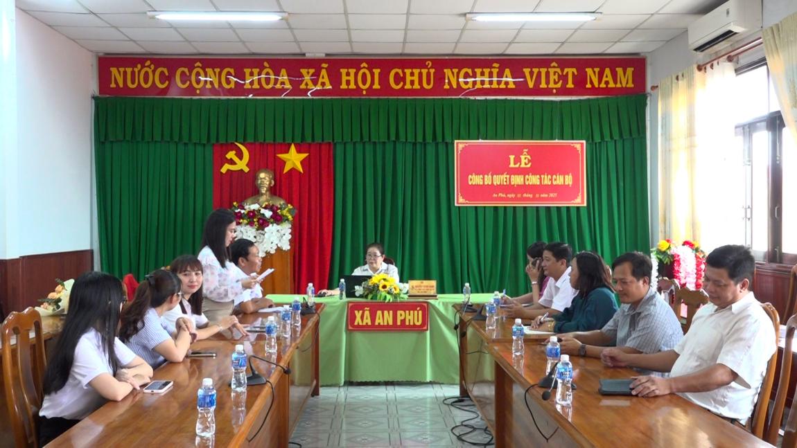 Chiều 3/10, UBND xã An Phú tổ chức Lễ công bố quyết định công tác cán bộ; bà Nguyễn Trung Hạnh, Phó Chủ tịch UBND xã đến dự và trao quyết định.