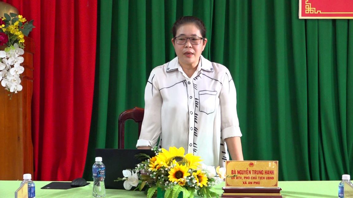Bà Nguyễn Trung Hạnh, Phó Chủ tịch UBND xã An Phú phát biểu tại buổi lễ