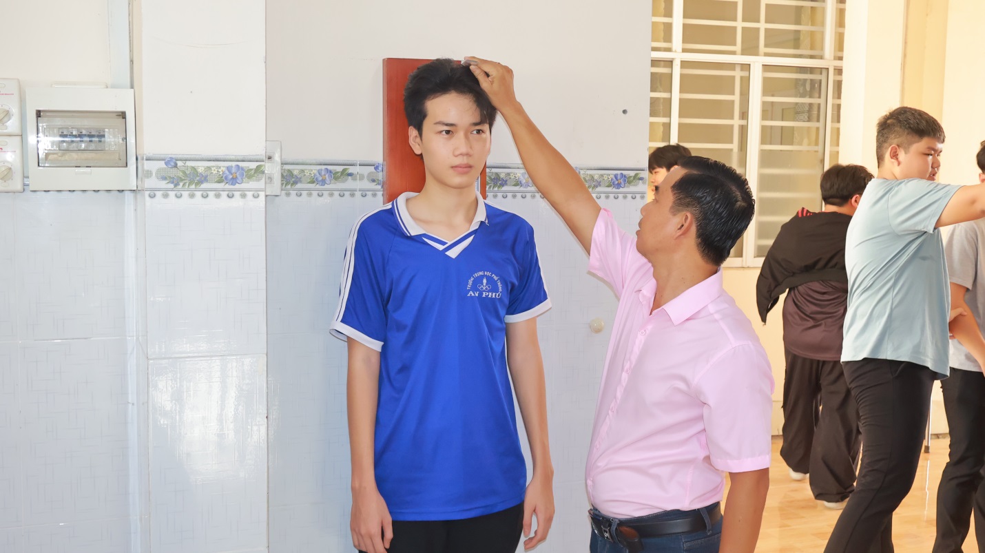 Lực lượng y tế xã kiểm tra tiêu chuẩn nam công dân tuổi 17