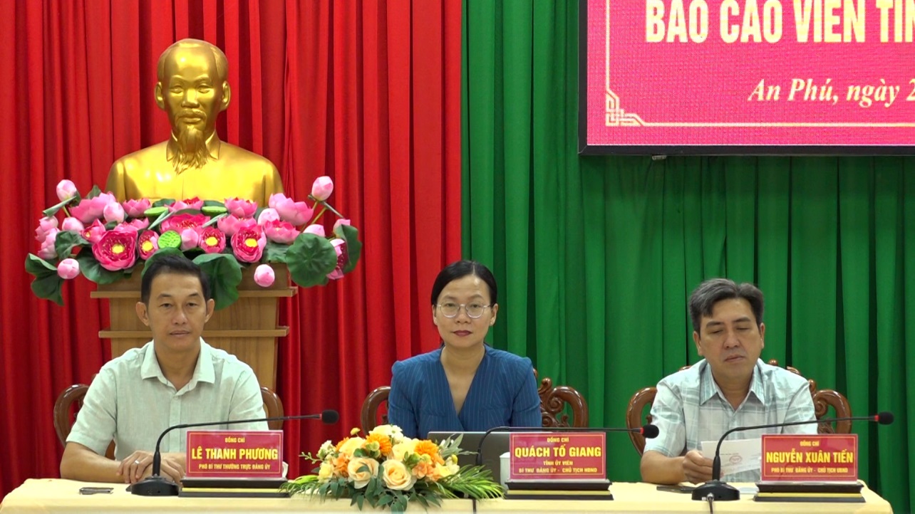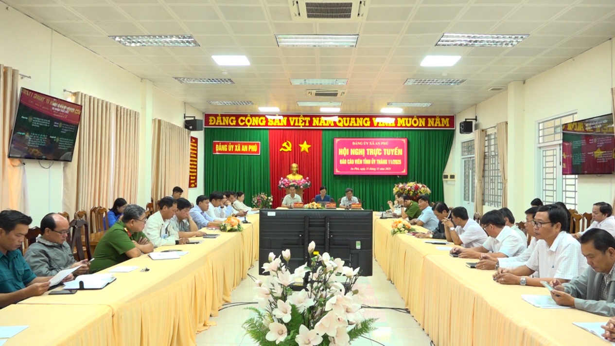 Sáng 21/11, Ban Tuyên giáo và Dân vận Tỉnh ủy An Giang tổ chức hội nghị báo cáo viên Tỉnh ủy tháng 11/2025 bằng hình thức trực tiếp kết hợp trực tuyến; tại điểm cầu xã An Phú, đồng chí Quách Tố Giang, Tỉnh ủy viên, Bí thư Đảng ủy, Chủ tịch HĐND xã chủ trì hội nghị.