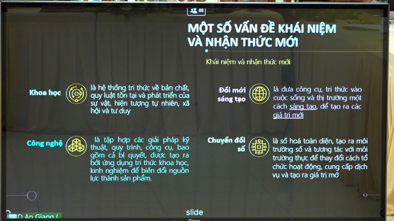 Tại hội nghị, các đại biểu được thông tin 02 chuyên đề gồm: An Giang tập trung triển khai thực hiện hiệu quả Nghị quyết số 57-NQ/TW, ngày 22/12/2024 của Bộ Chính trị về đột phá khoa học, công nghệ, đổi mới sáng tạo và chuyển đổi số quốc gia; triển khai, quán triệt thực hiện Quy định số 144-QĐ/TW, ngày 09/5/2024 của Bộ Chính trị quy định chuẩn mực đạo đức cách mạng của cán bộ, đảng viên giai đoạn mới và Chỉ thị số 42-CT/TW, ngày 16/1/2025 của Bộ Chính trị về tăng cường sự lãnh đạo của Đảng đối với công tác giáo dục cần, kiệm, liêm, chính, chí công vô tư.
