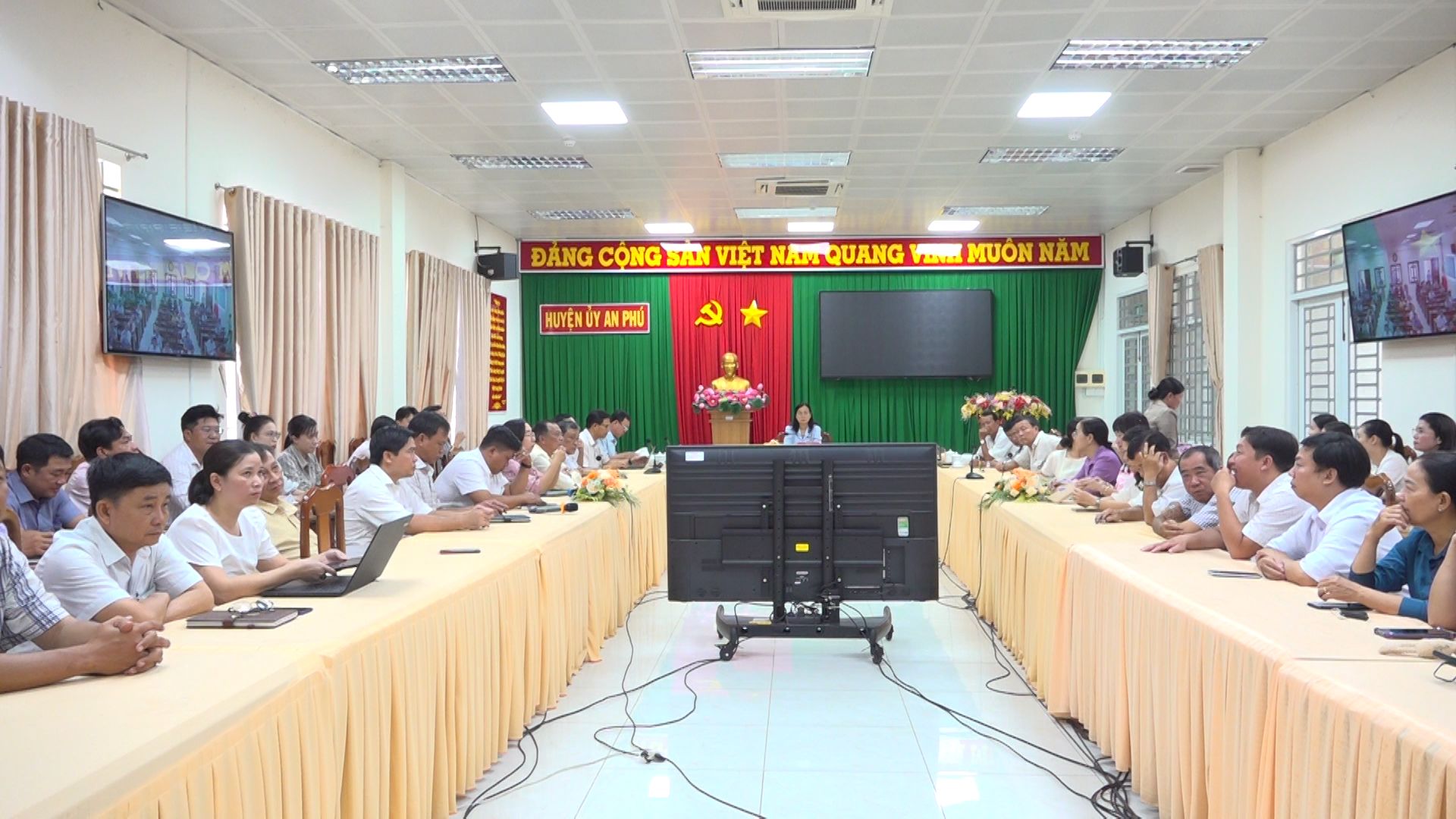 Dự hội nghị tại 03 điểm cầu huyện An Phú có bà Quách Tố Giang, Ủy viên Ban Chấp hành Đảng bộ tỉnh, Bí thư Huyện ủy; ông Phùng Minh Tân, Phó Bí thư Thường trực Huyện ủy, Chủ tịch HĐND huyện; ông Trang Công Cường, Chủ tịch UBND huyện. Hội nghị còn được kết nối trực tuyến đến 14 điểm cầu xã, thị trấn với hơn 2.760 đại biểu tham dự.