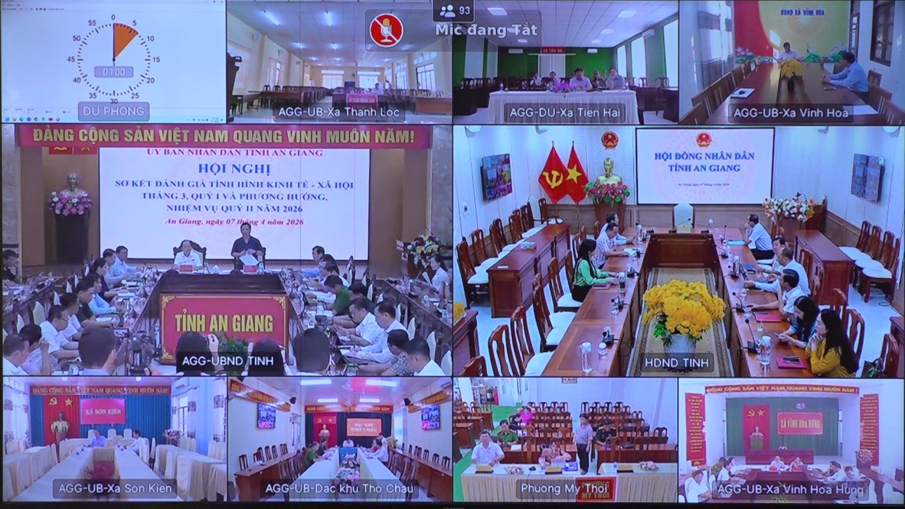 Sáng 7/4, UBND tỉnh An Giang tổ chức Hội nghị sơ kết đánh giá tình hình kinh tế - xã hội tháng 3, quý I và phương hướng, nhiệm vụ quý II/2026 bằng hình thức trực tiếp kết hợp trực tuyến; tham dự tại điểm cầu xã An Phú có ông Nguyễn Xuân Tiến, Phó Bí thư Đảng ủy, Chủ tịch UBND xã; ông Huỳnh Hưng Thượng, Phó Chủ tịch UBND xã.