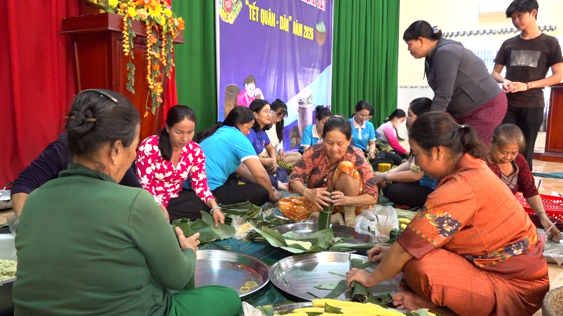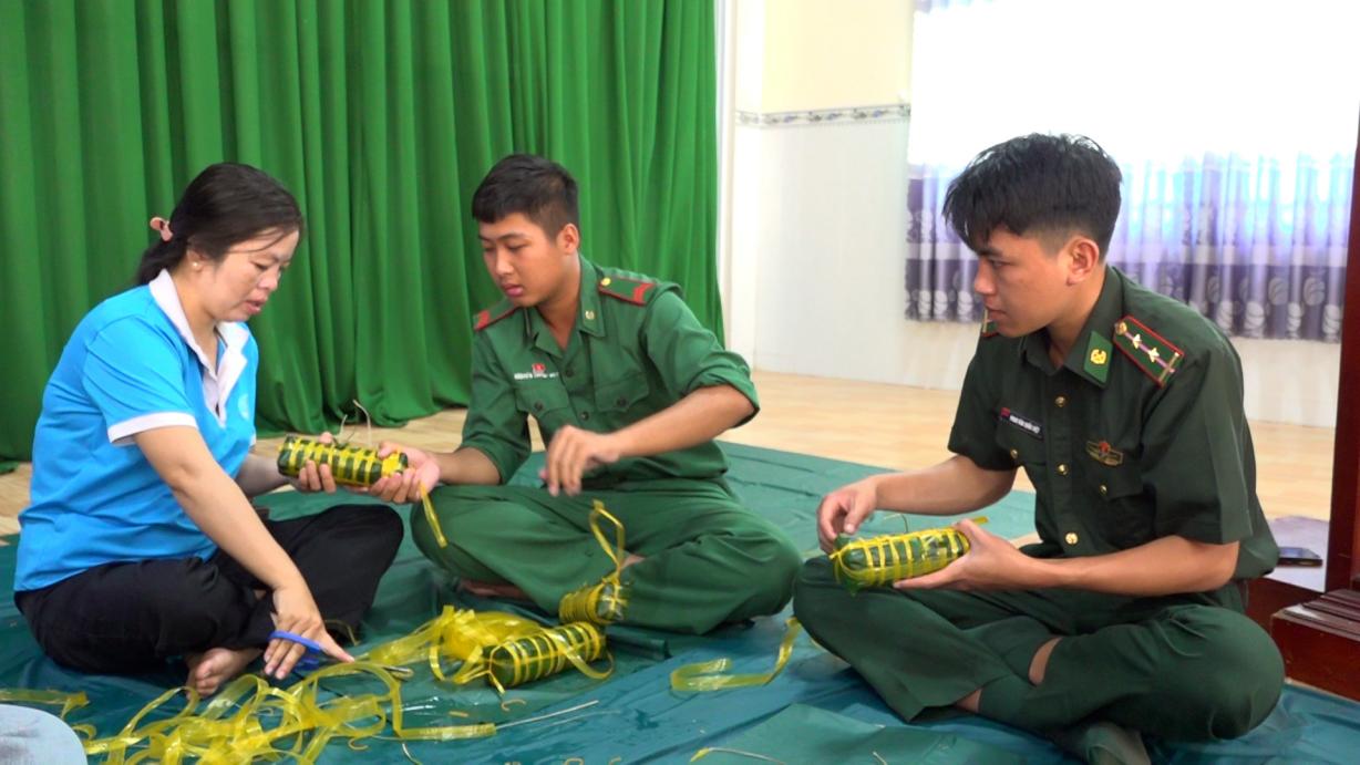 Trong không khí vui tươi, thấm tình đoàn kết quân - dân, hội viên phụ nữ xã An Phú cùng đoàn viên, thanh niên, cán bộ, chiến sĩ Đồn Biên phòng cửa khẩu Vĩnh Hội Đông và lực lượng dân quân địa phương đã cùng nhau gói hoàn thành 300 đòn bánh tét. Sau khi nấu chín, những đòn bánh tét nghĩa tình sẽ được trao tận tay hộ nghèo, mang cái Tết ấm áp và đủ đầy hơn đến các gia đình.