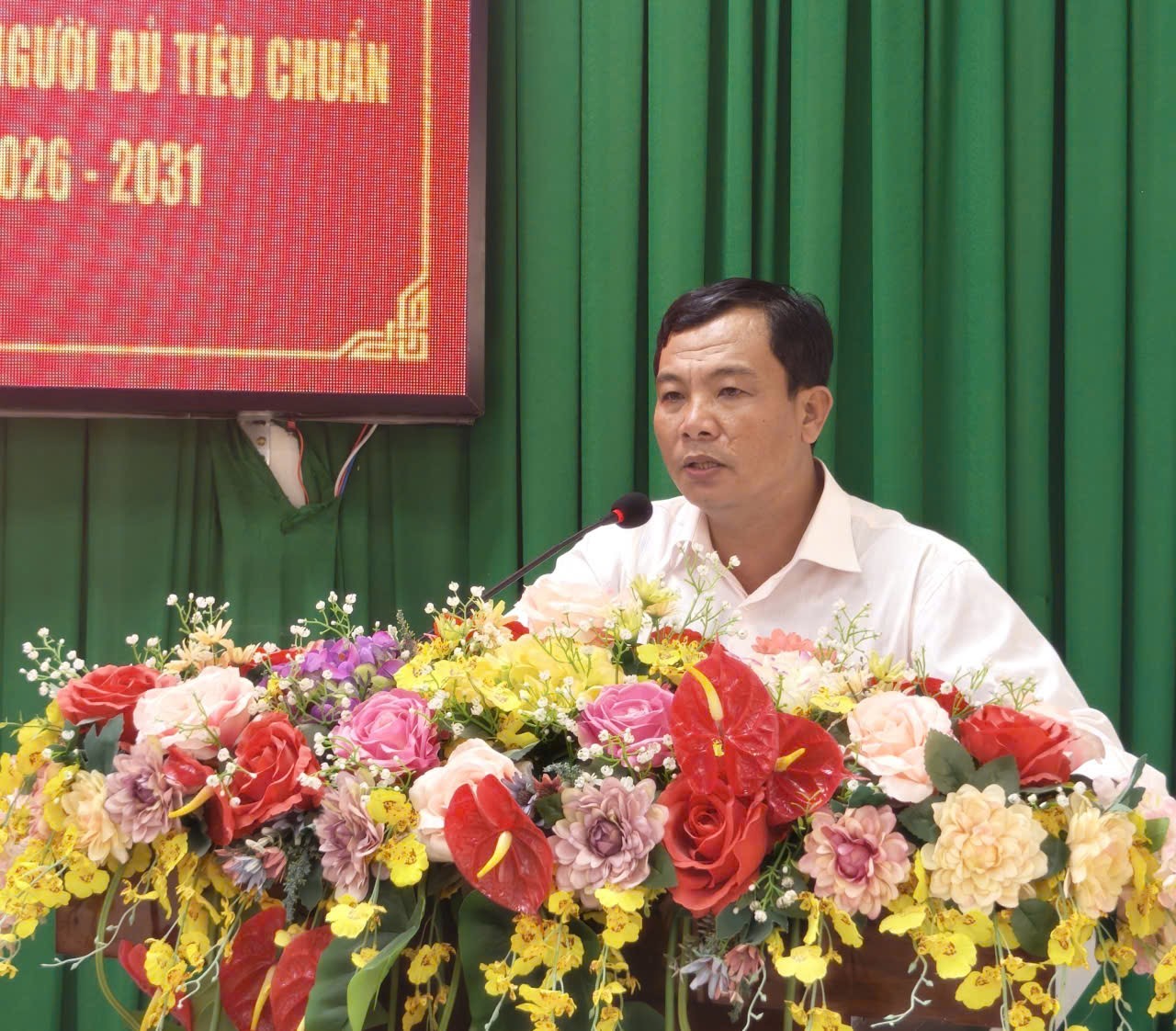 Ông Võ Văn Lẫy, UVBTV Đảng ủy, Chủ tịch Ủy ban MTTQ Việt Nam xã An Phú điều hành phần biểu quyết tại hội nghị
