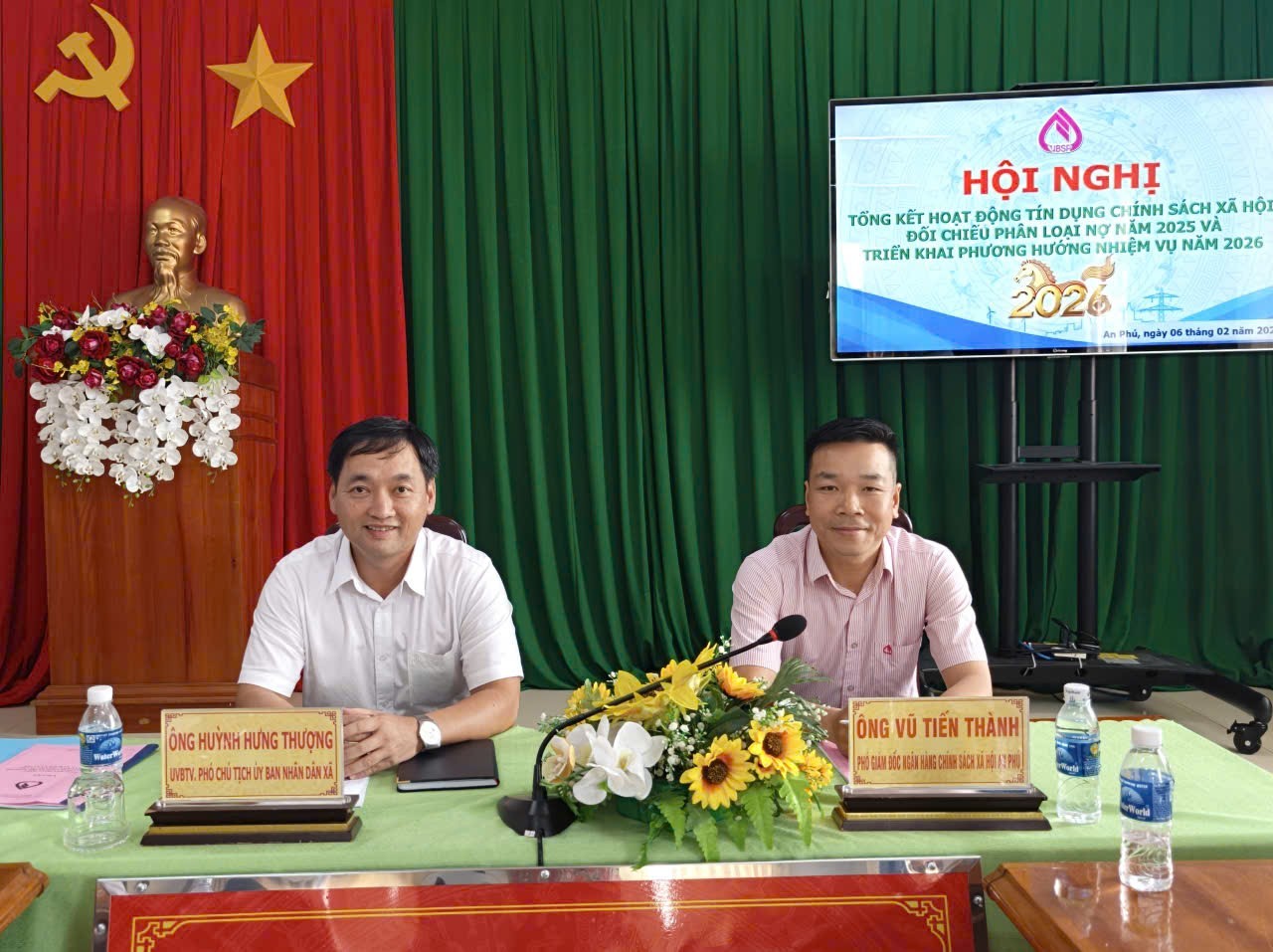 Chiều 6/2, UBND xã An Phú phối hợp với Phòng giao dịch Ngân hàng Chính sách xã hội (NHCSXH) An Phú tổ chức Hội nghị tổng kết hoạt động tín dụng chính sách xã hội và triển khai phương hướng nhiệm vụ năm 2026; ông Huỳnh Hưng Thượng, Phó Chủ tịch UBND xã; ông Vũ Tiến Thành, Phó Giám đốc Phòng giao dịch NHCSXH An Phú chủ trì hội nghị.