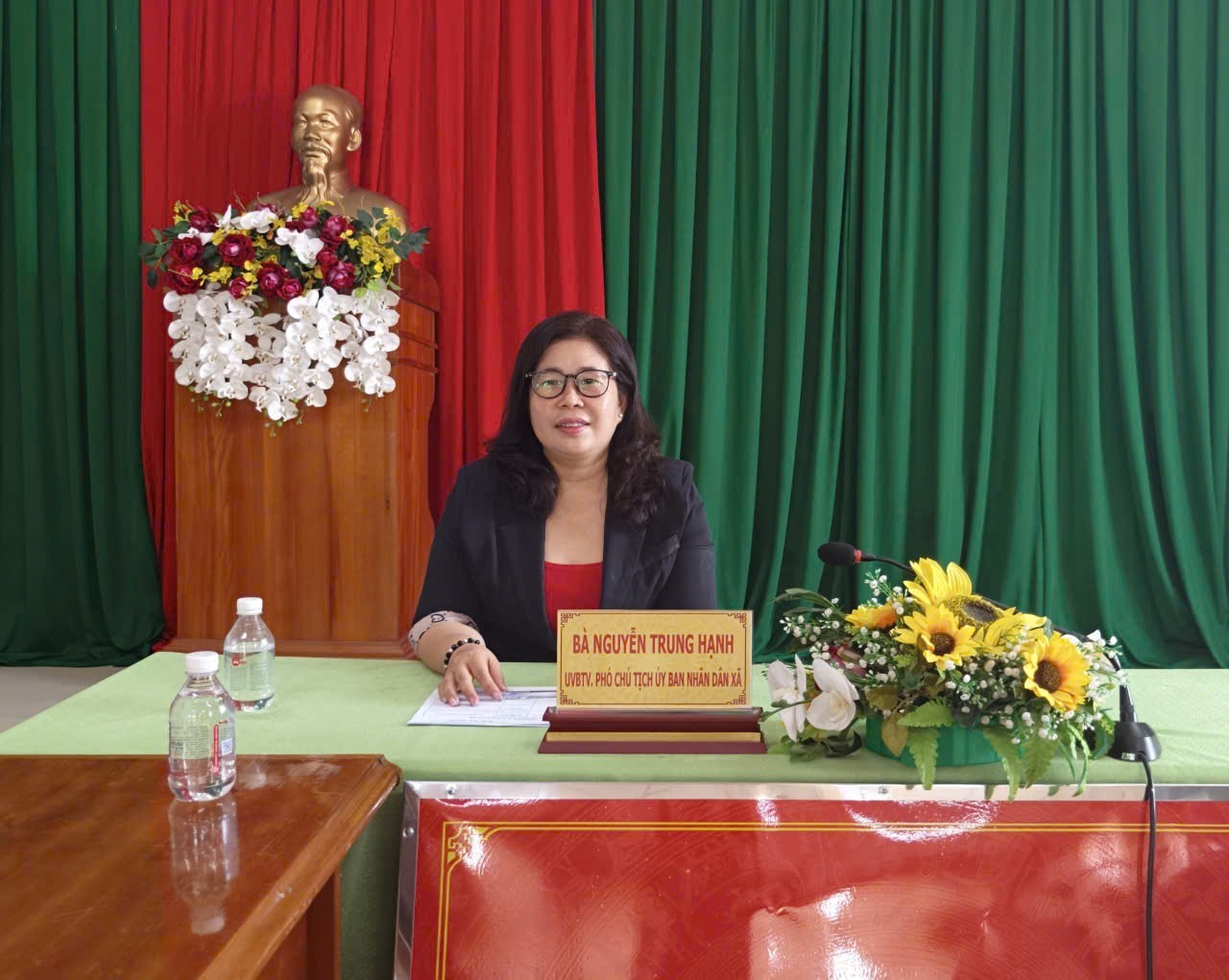 Bà Nguyễn Trung Hạnh, Phó Chủ tịch UBND xã, Chủ tịch Hội đồng xác định mức độ khuyết tật chủ trì cuộc họp
