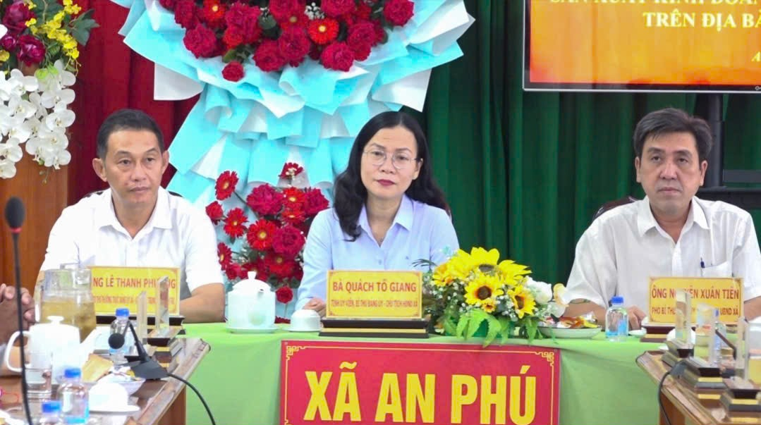 Nhân kỷ niệm ngày Doanh nhân Việt Nam 13/10, bà Quách Tố Giang, Tỉnh ủy viên, Bí thư Đảng ủy, Chủ tịch HĐND xã An Phú cũng chúc quý doanh nghiệp luôn mạnh khỏe, hạnh phúc và thành công trong sản xuất kinh doanh.