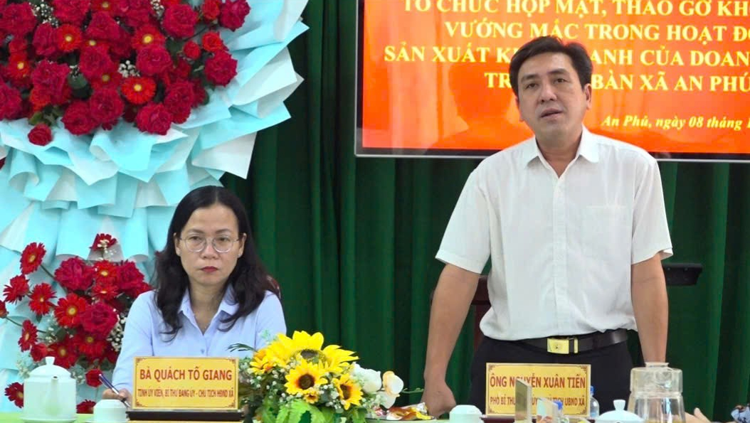 Ông Nguyễn Xuân Tiến, UVBTV Đảng ủy xã, Phó bí thư Đảng ủy, Chủ tịch UBND xã cho biết: Trong thời gian tới, UBND xã An Phú sẽ thành lập Ban hỗ trợ doanh nghiệp, đồng thời cam kết đồng hành với doanh nghiệp để nhanh chống giải quyết kịp thời các vướng mắc, tăng cường đối thoại định kỳ để doanh nghiệp phát triển bền vững, góp phần xây dựng xã An Phú ngày càng phát triển.
