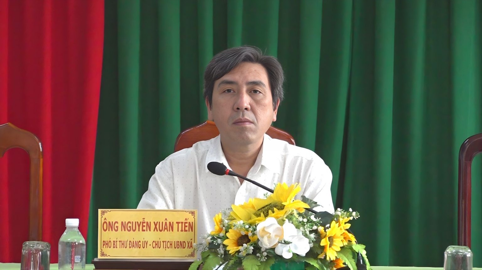 Ông Nguyễn Xuân Tiến, Phó Bí thư Đảng ủy, Chủ tịch UBND xã chủ trì cuộc họp triển khai Nghị định 154/2025/NĐ-CP