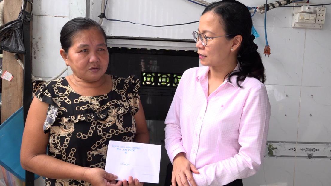Bí thư Đảng ủy, Chủ tịch HĐND xã An Phú Quách Tố Giang thăm gia tốc mái nhà