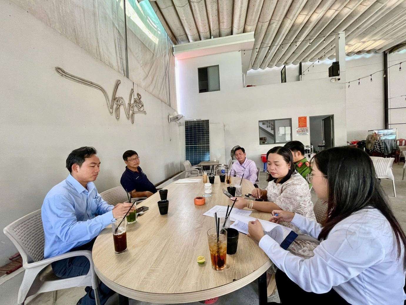 Đoàn kiểm tra làm việc với ông Lê Văn Hôn chủ quán cà phê Vy Vy