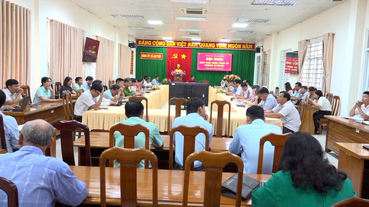 Sáng 24/3, Ban Dân vận Tỉnh ủy An Giang đã tổ chức hội nghị Báo cáo viên Tỉnh ủy tháng 3 năm 2026. Hội nghị được triển khai trực tuyến đến điểm cầu các xã, phường, đặc khu trên địa bàn tỉnh; tại điểm cầu xã An Phú, Tỉnh ủy viên, Bí thư Đảng ủy, Chủ tịch HĐND xã Quách Tố Giang chủ trì hội nghị.