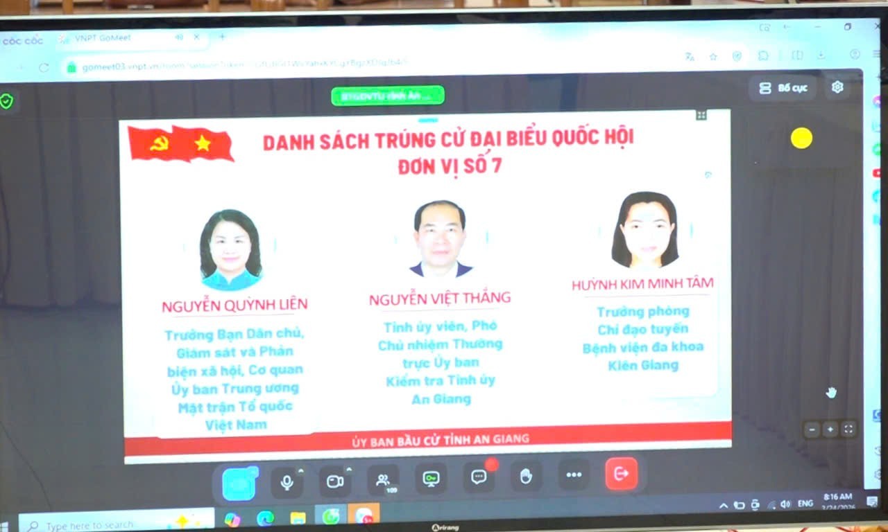 Tại hội nghị, các đại biểu được nghe báo cáo chuyên đề về kết quả bầu cử đại biểu Quốc hội và Hội đồng nhân dân các cấp, nhiệm kỳ 2026- 2031 trên địa bàn tỉnh An Giang do đồng chí Trương Long Hồ, Phó Giám đốc Sở Nội vụ trình bày.