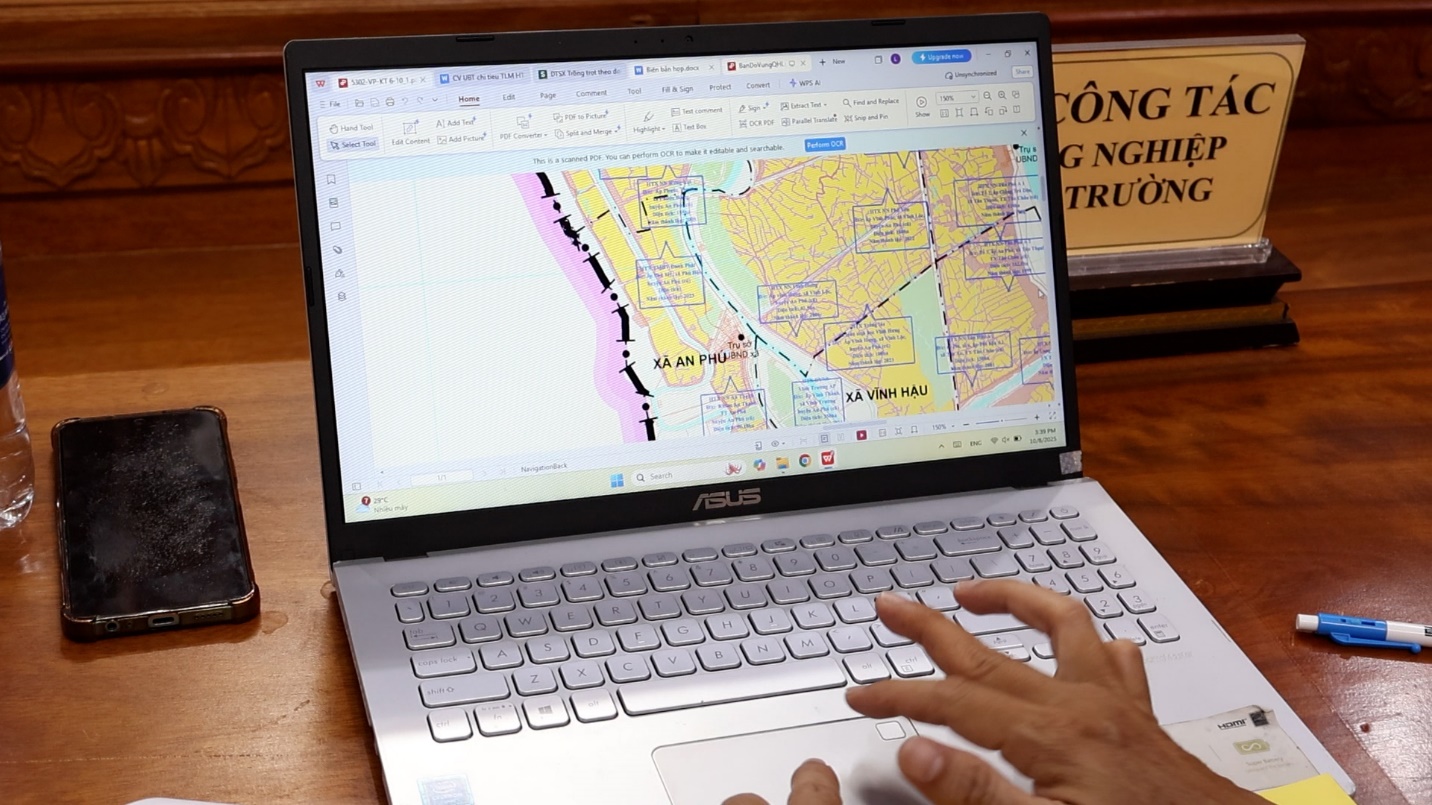 Ông Huỳnh Hưng Thượng, phó chủ tịch UBND xã An Phú ( đứng giữa ), ông Nguyễn Văn Trung phó phân viện trưởng, phân viện quy hoạch và thiết kế nông nghiệp ( bìa phải)