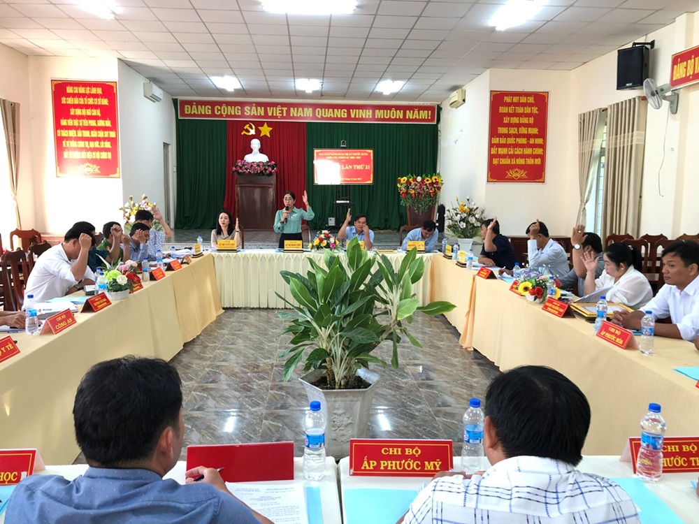 Chiều 25/12, Đảng ủy xã Phước Hưng tổ chức Hội nghị Ban Chấp hành Đảng bộ xã lần thứ 21 (mở rộng), nhiệm kỳ 2020 – 2025, nhằm đánh giá tình hình thực hiện nhiệm vụ chính trị năm 2024 và đề ra phương hướng, nhiệm vụ năm 2025; ông Nguyễn Văn On, Ủy viên Ban Chấp hành Đảng bộ huyện, Phó trưởng Ban Tuyên giáo Huyện ủy An Phú đến dự; bà Lê Thị Minh Thủy, Ủy viên Ban Chấp hành Đảng bộ huyện, Bí thư Đảng ủy xã, Chủ tịch UBND xã Phước Hưng chủ trì hội nghị.