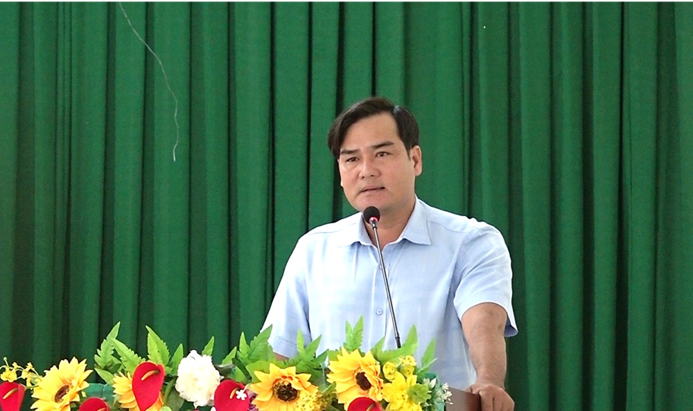 Ông Nguyễn Văn Ngoan, Phó Bí thư Đảng ủy xã phát biểu tại hội nghị