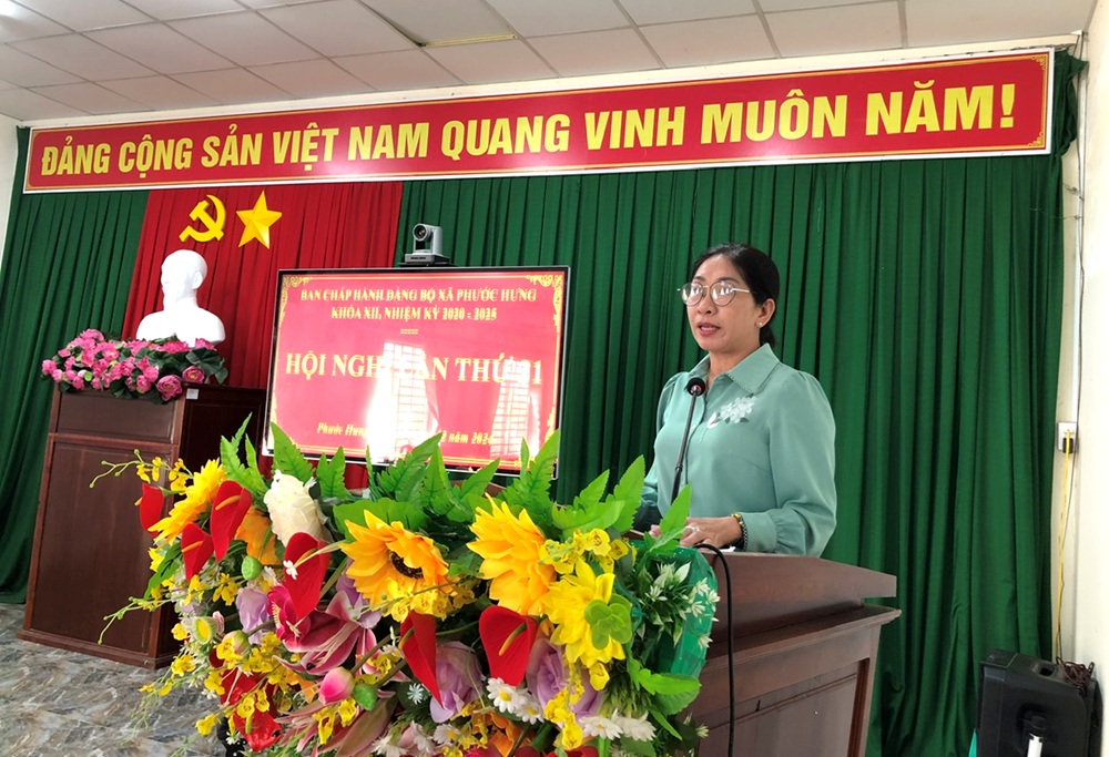 Bà Lê Thị Minh Thủy, Bí thư Đảng ủy, Chủ tịch UBND xã Phước Hưng kết luận hội nghị