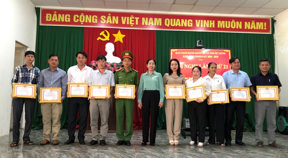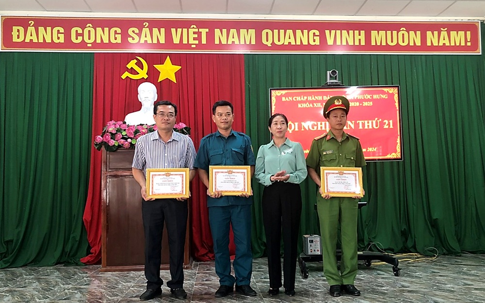 Dịp này, Đảng ủy xã Phước Hưng đã khen thưởng 03 tập thể và 37 cá nhân đạt thành tích “Hoàn thành xuất sắc nhiệm vụ” năm 2024.