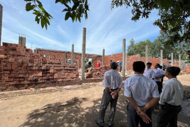 Đoàn công tác Huyện ủy đến kiểm tra công trình xây dựng Khu nhà Đại đoàn kết tại xã Nhơn Hội