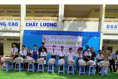 Nhóm Hoa Từ Bi và Nhóm Oxy trao 100 phần quà cho học sinh nghèo trường THCS Phú Hữu