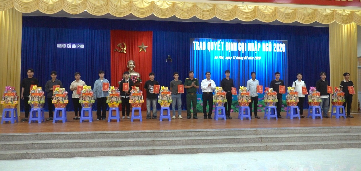 Mùa tuyển quân năm 2026, xã An Phú có 41 công dân trúng tuyển nghĩa vụ, trong đó có 26 công dân thực hiện nghĩa vụ quân sự và 15 công dân thực hiện nghĩa vụ tham gia công an nhân dân. Đây là những thanh niên ưu tú, đại diện cho thế hệ trẻ An Phú giàu nhiệt huyết và lòng yêu nước, sẵn sàng lên đường thực hiện nghĩa vụ thiêng liêng với Tổ quốc.